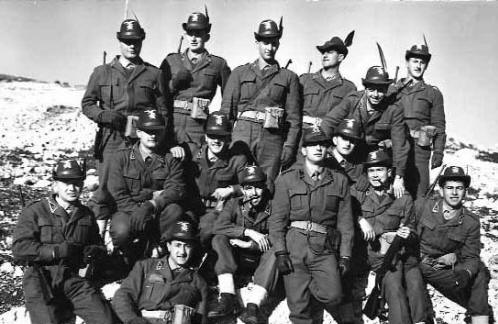 BTG. TRENTO, 144ª CP. Btg. Trento, 144ª cp. a Bolzano, il 2 giugno 1956. Da destra: il s.ten. Massimo Malgarini, e i sergenti Daves e Palmieri. Davanti l’allora tenente Giancarlo Bori, oggi generale. Contattare Massimo Malgarini, 0362/501625; e-mail: massimo.malgarini@alice.it |