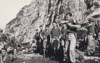ESPLORATORI SULLO JOF FUART Plotone esploratori btg. Gemona 1959/1960 su una cengia dello Jof Fuart. Chi si riconosce contatti Cesare Prina (nella foto indicato dalla freccia), cell. 339/6178755. |